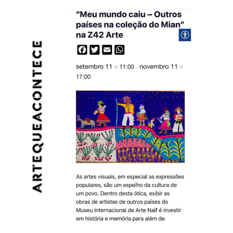 As artes visuais, em especial as expressões populares, são um espelho da cultura de um povo. Dentro desta ótica, exibir as obras de artistas de outros países do Museu Internacional de Arte Naïf é investir em história e memória para além de fronteiras geográficas. É manter viva esta coleção tão importante, que durante tantos anos foi exibida em sua sede, que funcionou entre 1995 e 2016, em um casarão também no Cosme Velho.
